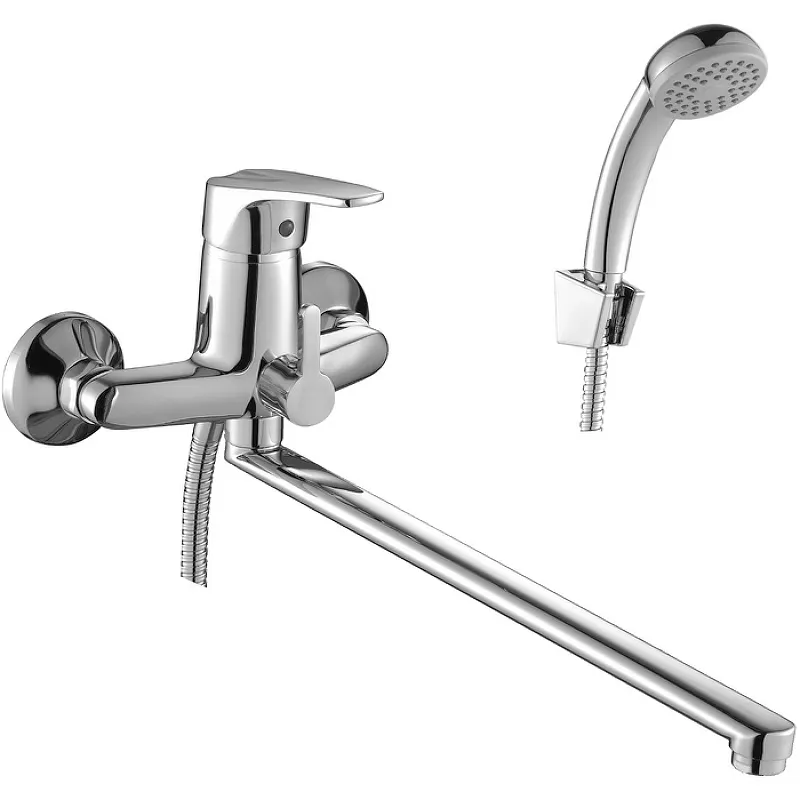 Смеситель для ванны Rossinka D40-32 универсальный с душевым гарнитуром — это идеальное решение для создания современного и функционального интерьера вашей ванной комнаты. Хромированный смеситель для ванны с длинным изливом обеспечивает удобство использования и стильный внешний вид.