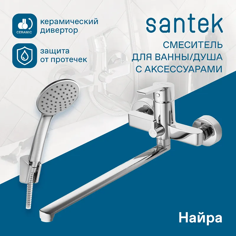 Преимущества Смеситель для ванны Santek Найра WH5A12001C001 универсальный Хром