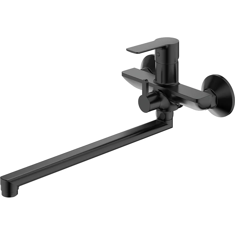 Смеситель для ванны Splenka S06.22.06 универсальный.Характеристики: Цвет: черный матовый. Материал: латунь. Управление: однорычажное. Механизм: керамический картридж. Излив: поворотный. Стандарт подводки: G 1/2. Аэратор. Переключатель ванна/душ. Монтаж: на стену. В комплекте поставки: Смеситель для ванны. Аэратор. Комплект креплений.