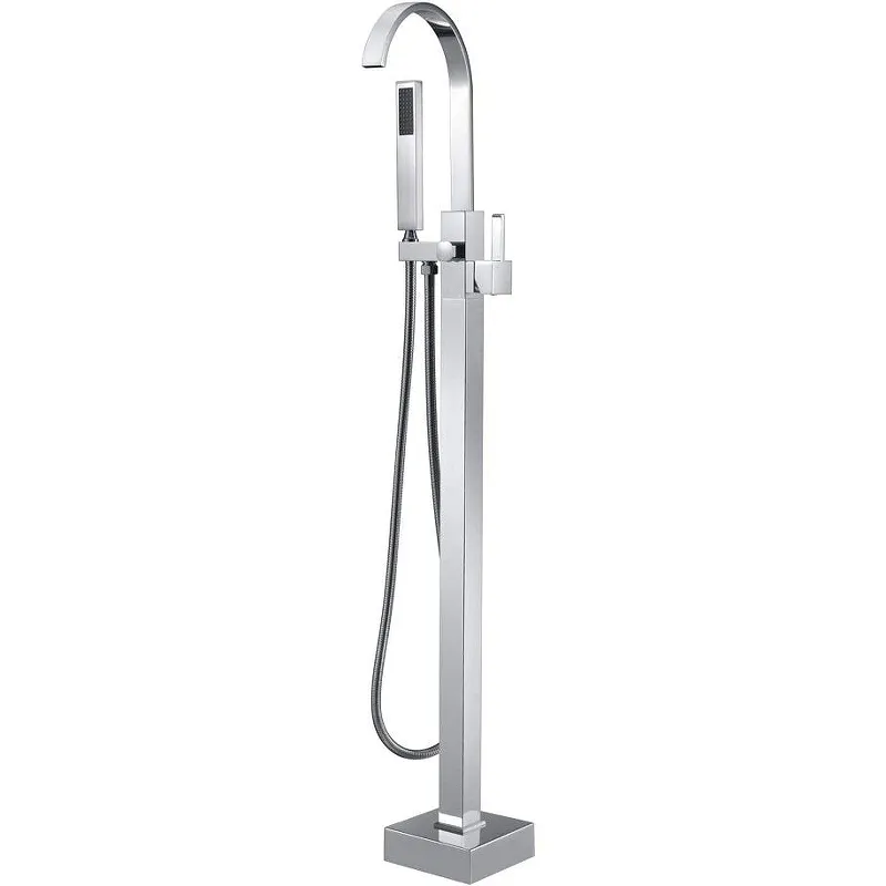 Смеситель для ванны Swedbe Spira 4003.Характеристики: Цвет: хром. Материал: латунь. Тип управления: однорычажный. Механизм: керамический картридж. Девиатор. Аэратор. Стандарт подводки: 1/2. Монтаж: на пол. В комплекте поставки: Смеситель. Ручной душ. Шланг.