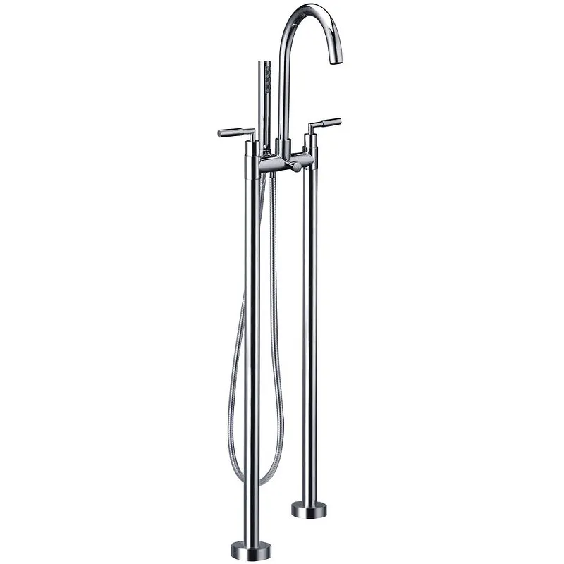 Смеситель для ванны Swedbe Spira 4006.Характеристики: Цвет: хром. Материал: латунь. Тип управления: вентильный. Механизм: кран-букса. Девиатор. Аэратор. Стандарт подводки: 1/2. Монтаж: на пол. В комплекте поставки: Смеситель. Ручной душ. Шланг.