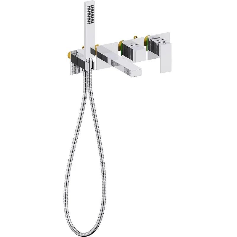 Смеситель для ванны Timo Selene 2014/00YSM.Характеристики: Цвет: хром. Материал: латунь. Поверхность: глянцевая. С фиксированным изливом. Механизм: керамический картридж 35 мм. Отверстия для монтажа: 4. Стандарт подключения: G 1/2. Количество режимов ручного душа: 1. Гибкий шланг 150 см. Монтаж: встраиваемый. В комплекте поставки: Смеситель (внешняя и внутренняя части). Излив встроенный (латунный). Блок управления режимами. Держатель ручной лейки встроенный с подключением шланга душа. Монтажный блок для подключения (латунь). Блок управления режимами. Ручная лейка (латунь). Шланг душа. Инструкция.