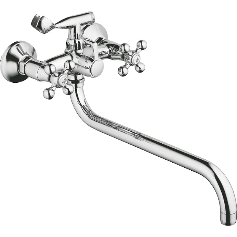 Смеситель для ванны Viko V-1215 универсальный, с душевым гарнитуром.Характеристики: Цвет: хром. Материал: латунь. Управление: двухвентильное. Механизм: керамическая кран-букса. Излив: поворотный. Монтаж: на стену. Тип подводки: жесткая. Стандарт подводки: G 1/2. В комплекте поставки: Смеситель для ванны. Душевой шланг. Душевая лейка. Держатель лейки. Отражатели: 2 шт. Эксцентрики: 2 шт. Комплект прокладок.