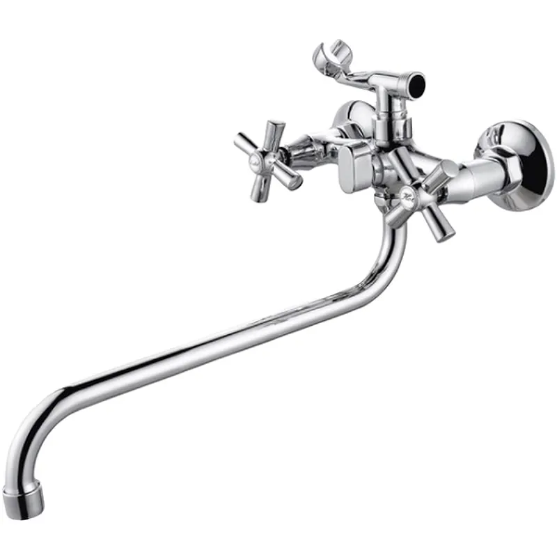 Смеситель для ванны Viko V-1415 универсальный, с душевым гарнитуром.Характеристики: Цвет: хром. Материал: латунь. Управление: двухвентильное. Механизм: керамическая кран-букса. Излив: поворотный. Монтаж: на стену. Тип подводки: жесткая. Стандарт подводки: G 1/2. Длина шланга: 1500 мм. В комплекте поставки: Смеситель для ванны. Душевой шланг. Душевая лейка. Держатель лейки. Отражатели: 2 шт. Эксцентрики: 2 шт. Комплект прокладок.
