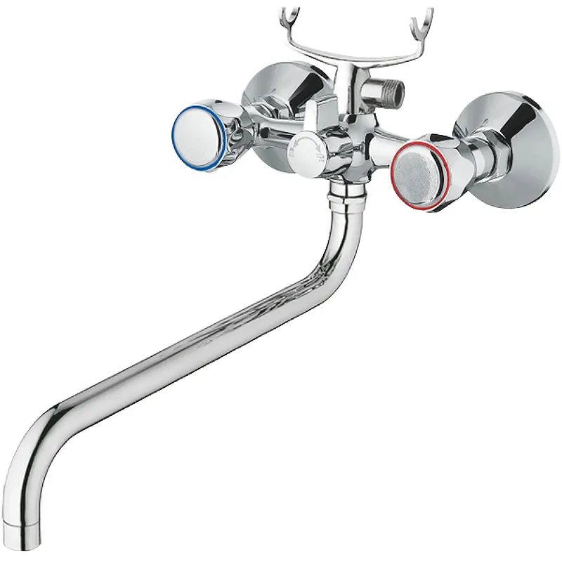 Смеситель для ванны Viko V-2425 универсальный, с душевым гарнитуром.Характеристики: Цвет: хром. Материал: латунь. Управление: двухвентильное. Механизм: керамическая кран-букса. Излив: поворотный. Монтаж: на стену. Тип подводки: жесткая. Стандарт подводки: G 1/2. В комплекте поставки: Смеситель для ванны. Душевой шланг. Душевая лейка. Держатель лейки. Отражатели: 2 шт. Эксцентрики: 2 шт. Комплект прокладок.