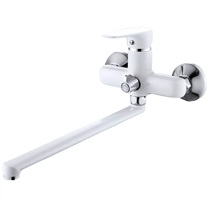 Смеситель для ванны Viko V-4145 универсальный, с душевым гарнитуром.Характеристики: Цвет: белый, хром. Материал: латунь. Управление: однорычажное. Механизм: керамический картридж 35 мм. Излив: поворотный. Монтаж: на стену. Тип подводки: жесткая. Стандарт подводки: G 1/2. Длина шланга: 1500 мм. В комплекте поставки: Смеситель для ванны. Душевой шланг. Душевая лейка. Держатель лейки. Отражатели: 2 шт. Эксцентрики: 2 шт. Комплект прокладок.