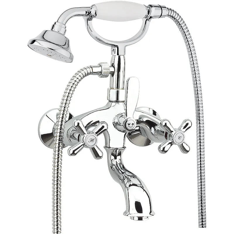 Смеситель для ванны Webert Armony AM720201015.Характеристики: Цвет: хром. Материал: латунь. Материал ручного душа: керамика. Монтаж: настенный. Отверстия для монтажа: 2. Управление: вентильное. Тип излива: фиксированный. Механизм: керамический катридж. Стандарт подключения: 1/2. Тип подводки: жесткая. Длина шланга: 1500 мм. В комплекте поставки: Смеситель. Душевой гарнитур.