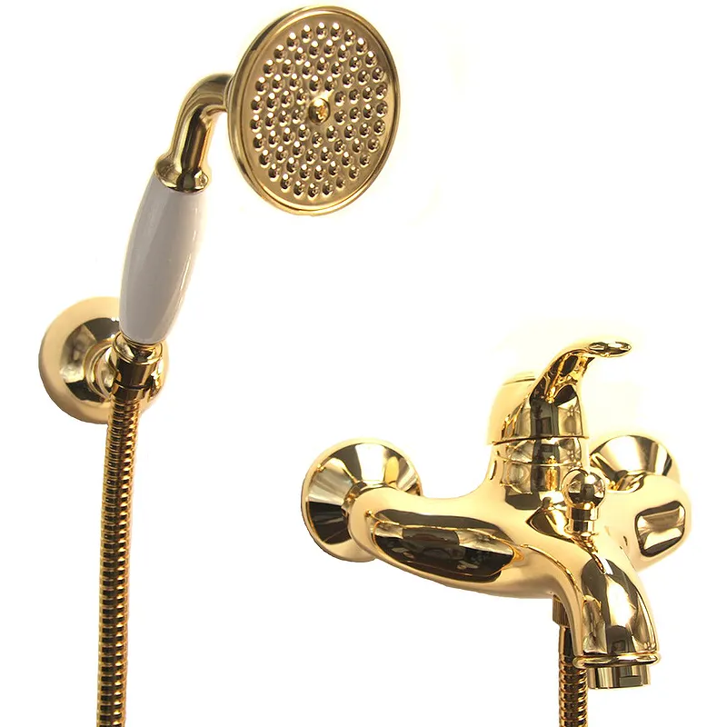 - Элегантный золотой смеситель для ванны: изысканный цвет добавляет роскошь в интерьер, создавая атмосферу ретро.