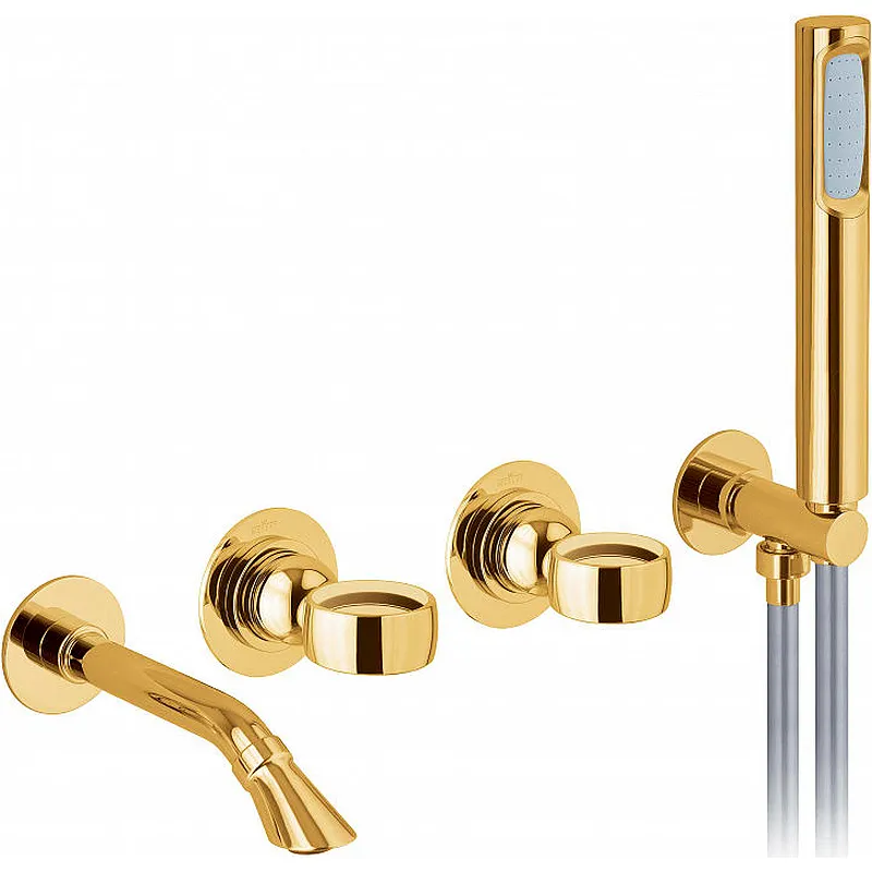 Смеситель для ванны Webert Opera OA860312010.Характеристики: Цвет: золото. Материал: латунь. Монтаж: встраиваемый. Отверстия для монтажа: 4. Управление: рычажное. Тип излива: фиксированный. Механизм: керамический катридж. Стандарт подключения: 1/2. Тип подводки: жесткая. Длина шланга: 1500 мм. Режим экономии воды. В комплекте поставки: Смеситель (внешняя и внутренняя часть). Душевой гарнитур. Девиатор.