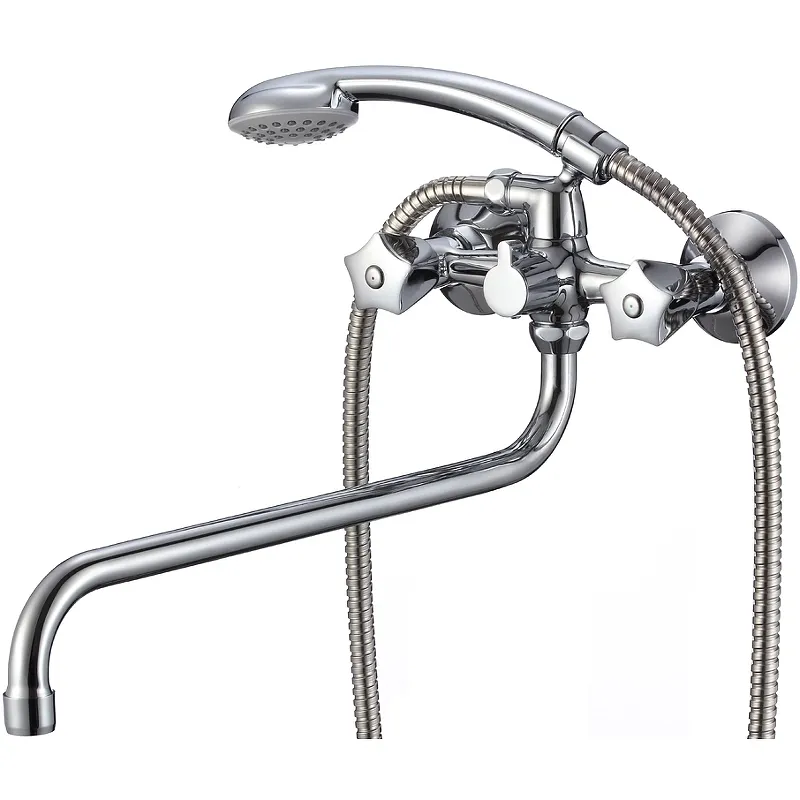 Смеситель для ванны WesnaArt Kamila KAM16-322-23241 универсальный.Характеристики: Цвет: хром. Материал: латунь. Покрытие: Mirror Shine. Управление: двухвентильное. Механизм: керамическая кран-букса, угол поворота 180 градусов с термозащитными вставками. Излив: поворотный. Аэратор. Керамический дивертор 90 градусов. Душевой шланг в оплетке из нержавеющей стали Double Lock, длиной 1.5 м. Количество режимов струи ручного душа: 1. Функция экономии расхода воды. Стандарт подводки: 1/2. Отверстия для монтажа: 2. Монтаж: на стену. В комплекте поставки: Смеситель для ванны. Ручной душ. Душевой шланг. Держатель ручного душа на корпусе. Эксцентрики. Отражатели.