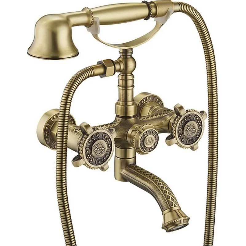 Смеситель для ванны Zorg Antic A 2001W-BRХарактеристики: Материал: Латунь Цвет: БронзаУправление: ВентильноеСтандарт подводки: 1/2" В состав комплекта входит: Смеситель Аэратор Крепления Гибкая подводка Инструкция