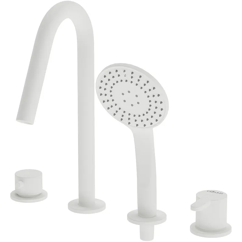 Смеситель на борт ванны Cezares Leaf LEAF-BVDM4-BIO с душевым гарнитуром.Характеристики: Цвет: белый матовый. Материал: латунь. Управление: однорычажное. Механизм: керамический картридж, Cold Start. Излив: фиксированный. Аэратор. Стандарт подводки: 1/2. Тип подводки: гибкая. Монтаж: на борт ванны. Отверстия для монтажа: 4. Рабочий интервал давления в водопроводной сети: 0,5-6,0 Атм. В комплекте поставки: Смеситель. Излив. Душевой шланг. Ручной душ. Держатель ручного душа. Гибкая подводка. Крепления.