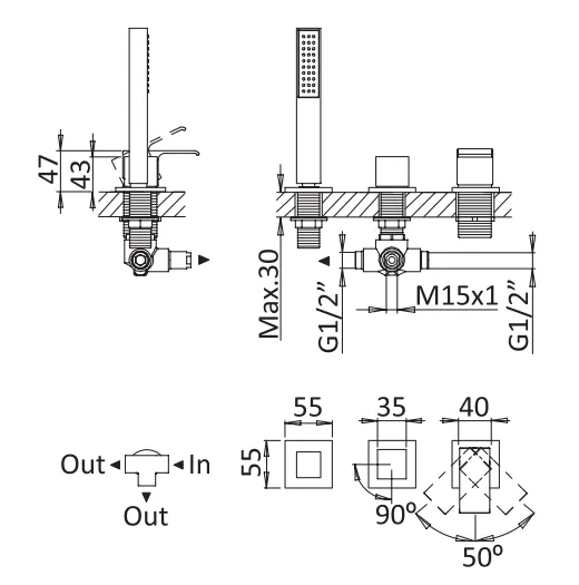 Смеситель на борт ванны CEZARES арт-PORTA-BVDM3-SS