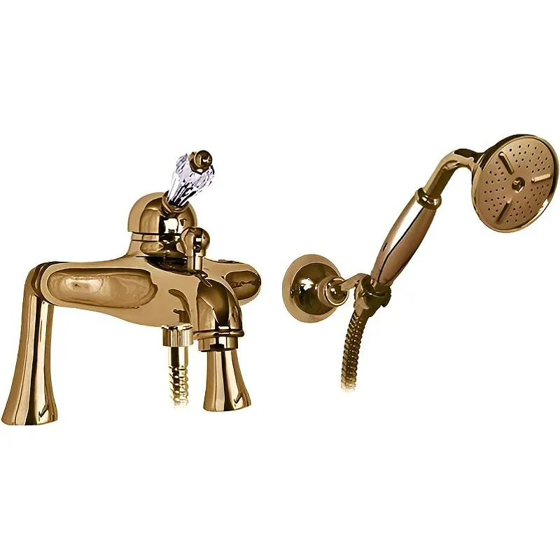 Смеситель на борт ванны Cezares Vintage VINTAGE-PBVM-02-Sw однорычажный, монтируемый в два отверстия, с аэратором, с душевым гарнитуром. Характеристики: Поверхность: бронза. Ручка: кристалл Swarovski. Корпус: высококачественная латунь. Излив: фиксированный, L 16,8 см. Механизм: керамический картридж. Переключатель душ/излив. Душевой шланг: гибкий. Душевая лейка: однорежимная. Держатель лейки: настенный, с регулируемым углом наклона. Стандарт подключения: G 1/2. Рабочий интервал давления: 0,5-6 Атм. В комплекте поставки: Смеситель. Душевая лейка. Настенный держатель лейки. Душевой шланг. Комплект креплений.