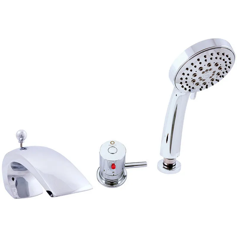 Смеситель на борт ванны Rav Slezak Dunaj Termostat DT272.5S с термостатом.Характеристики: Цвет: хром. Материал: латунь. Управление: однорычажный. Фиксированный излив. Механизм: термостатический картридж КА4006 40 мм, производство KEROX. Керамический переключатель на изливе. Душевая лейка с 5 режимами. Пластиковый шланг 2000 мм с пружиной. Пружина обеспечивает лёгкий ход шланга при возвращении в держатель Стандарт подводки: 1/2. Отверстия для монтажа: 3. Монтаж: на борт ванны. В комплекте поставки: Смеситель. Душевая лейка. Шланг. Гибкая подводка. Крепления.