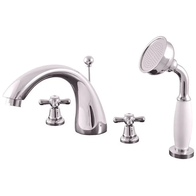 Смеситель на борт ванны Rav Slezak Morava retro MK169.5S.Характеристики: Цвет: хром. Материал: латунь. Излив: фиксированный. Управление: вентильный. Механизм: керамическиe кран-буксы. Керамический переключатель душ/излив в изливе. Шланг металлический 200 см с двойной оплеткой и пружиной. Латунная душевая лейка с 1 режимом струи. С функцией экономии расхода. Стандарт подводки: 1/2. Отверстия для монтажа: 4. Монтаж: на борт ванны. В комплекте поставки: Смеситель. Душевая лейка. Шланг. Комплект креплений.