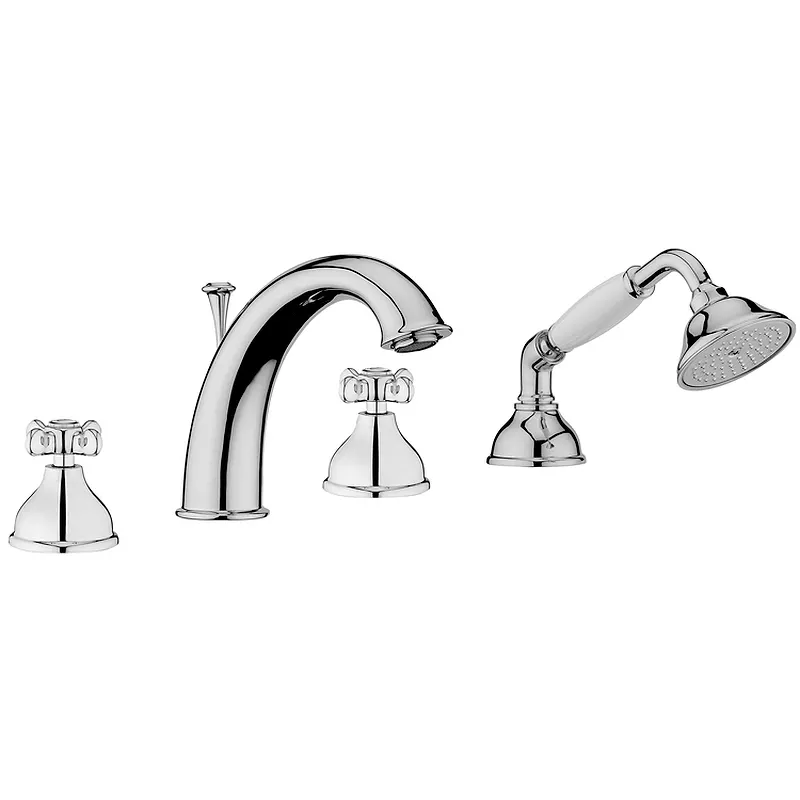 Смеситель на борт ванны Webert Ottocento OT730101015.Характеристики. Цвет: хром. Цвет ручек: белый. Материал: латунь. Монтаж: на борт ванны. Управление: вентильное. Тип излива: фиксированный. Механизм: керамический катридж. Стандарт подключения: 1/2. Тип подводки: жесткая. Длина шланга: 1500 мм. Отверстия для монтажа: 4. В комплекте поставки: Смеситель. Душевой гарнитур.