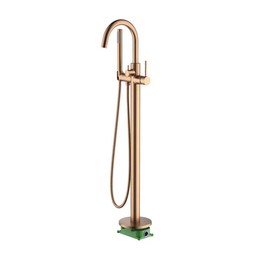 Цвет "розовое золото" является маркером стиля и элегантности. Мягкий оттенок придает дизайну ванной комнаты утонченности и сдержанности. Напольный смеситель Timo Saona 2310 предназначен для установки в ванную комнату. Дизайнерская модель одинаково подходит для классического или современного интерьера и станет идеальным сочетанием практичности и комфорта. Основные преимущества: все коммуникации, крепления спрятаны в полу, видны только декоративные элементы. Установить смеситель можно в любом месте. Статичная конструкция не требует ремонта ввиду отсутствия подвижного механизма. Смеситель управляется джойстиком, плавно регулирующим температуру воды и напор. Переключение режимов излив / ручная лейка осуществляется дивертором расположенном на корпусе смесителя. Сложностей монтажа не возникает при установке смесителя опытным сантехником. Внимательно изучите инструкцию по монтажу и эксплуатации. Цвет "розовое золото" прост в уходе, не оставляет отпечатков пальцев и разводы от воды.