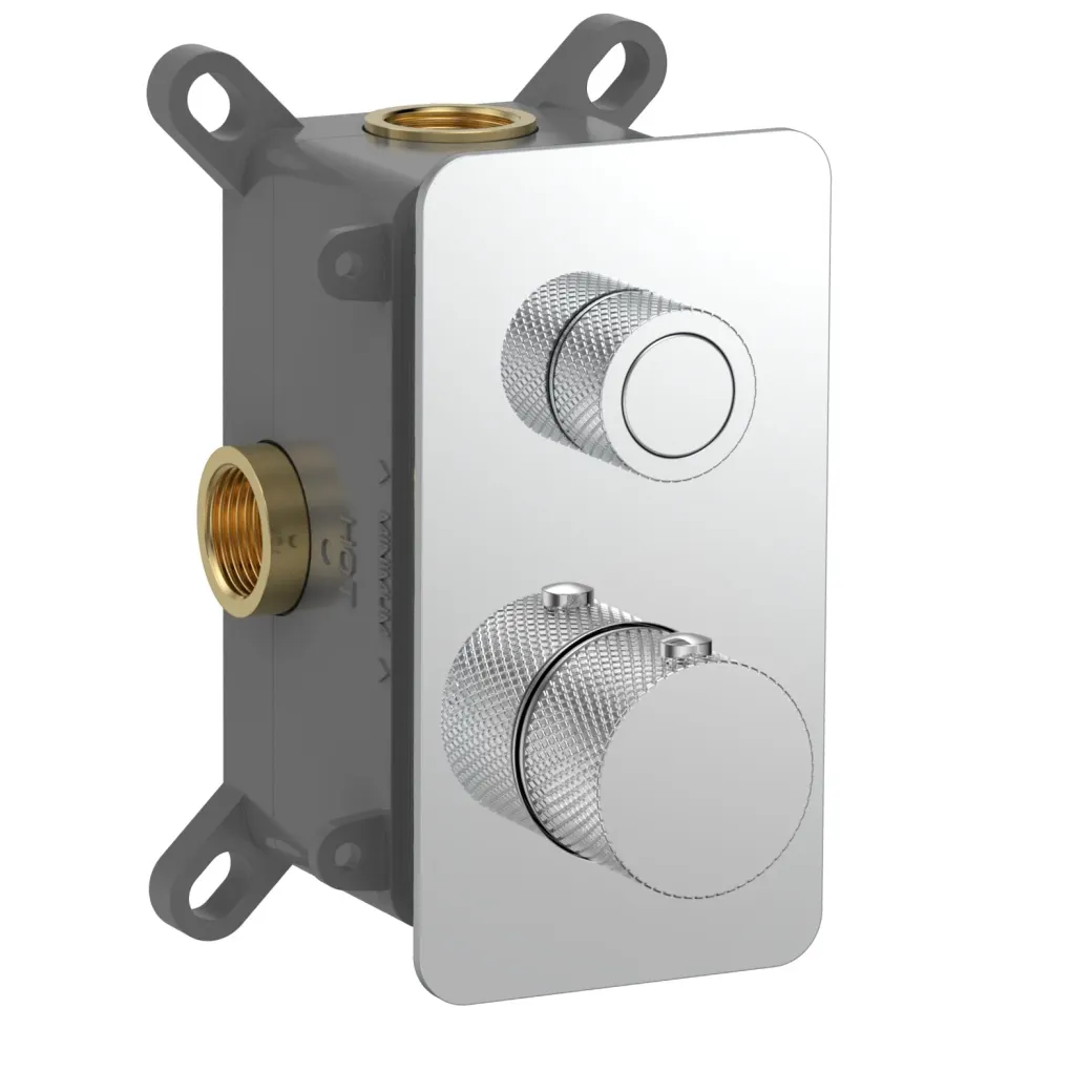 Изделие: смеситель термостатический, Назначение: для душа, для ванны, для раковины, Встраиваемый смеситель: да, Монтаж: на стену, Управление: вентильное, нажимное, Отверстия для монтажа: на 1 отверстие, Особенности: скрытый монтаж, Форма: прямоугольная, Материал: латунь, Гарантия: 5 лет, Страна бренда: Италия