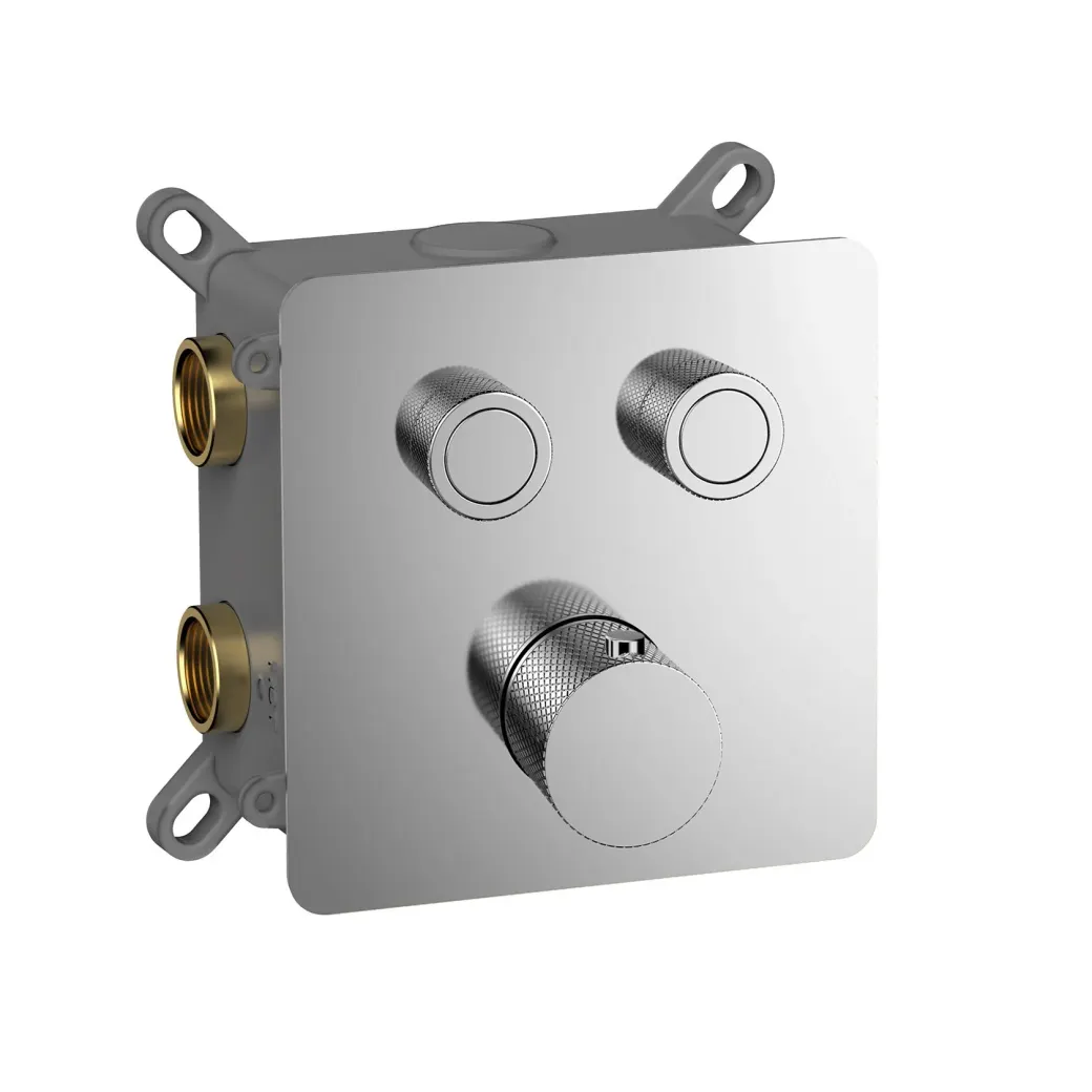 Изделие: смеситель термостатический, Назначение: для душа, для ванны, для раковины, Встраиваемый смеситель: да, Монтаж: на стену, Управление: вентильное, нажимное, Отверстия для монтажа: на 1 отверстие, Особенности: скрытый монтаж, Форма: прямоугольная, Материал: латунь, Гарантия: 5 лет, Страна бренда: Италия