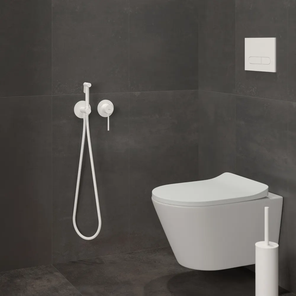 "Белый матовый" цвет - это воплощение идеи элегантности и современного подхода, он выразителен и аристократичен. Смесители белого цвета универсальны и могут сочетаться с аксессуарами и отделкой стен разных цветов. Встраиваемый смеситель с гигиеническим душем Timo Saona 2339 предназначен для монтажа в твердой или полой стене. Термокартридж с защитой от ожогов ограничивает максимальную температуру воды 45 С° повышая комфортность и безопасность использования. Основной задачей данной модели является: экономия места (установка чаши для биде занимает достаточно много места и к тому же затратнее). Все коммуникации, крепления и механизмы спрятаны в стену и закрыты декоративными накладками, снаружи находится только рычаг управления смесителем и держатель гигиенической лейки с подключеним шланга, такая модель отлично сочетается с инсталляцией для унитаза. Длины шланга 1,2 метра хватает для решения гигиенических задач. Можно также использовать например, для мытья собаки после прогулки или наполнения ведра воды и т.д. Сложностей монтажа не возникает при установке смесителя опытным сантехником. Внимательно изучите инструкцию по монтажу и эксплуатации. Уход за такими смесителями самый легкий, на них практически не видны водяные разводы.