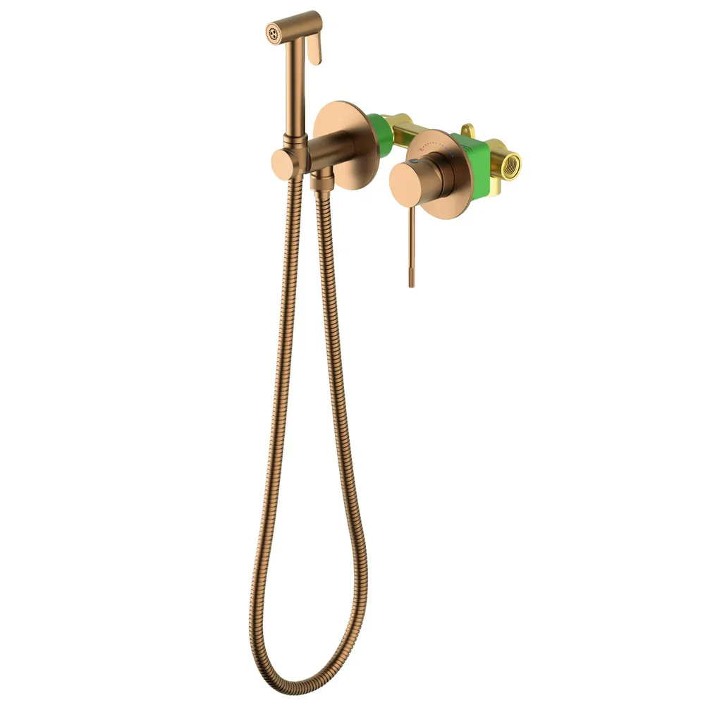 Смеситель встроенный с гигиеническим душем с защитой от ожогов Timo Saona розовое золото арт-2339/19SM