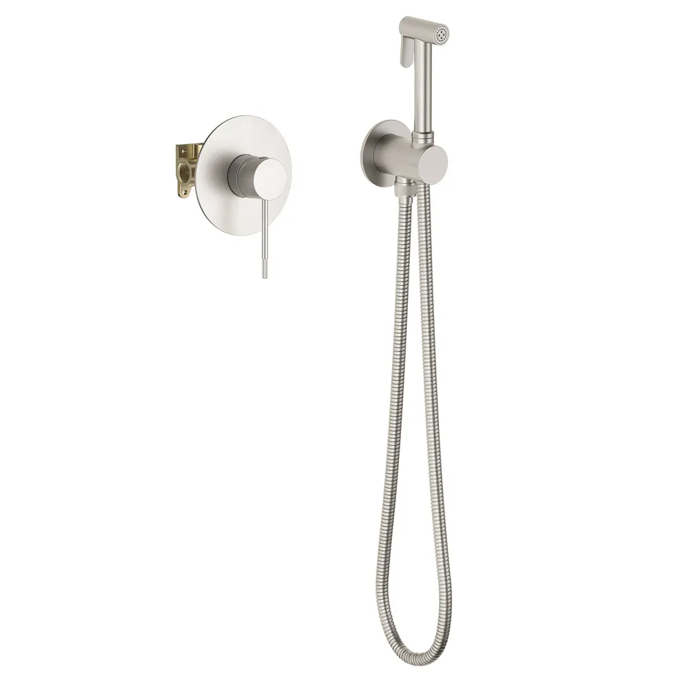 Цвет "матовый никель" является новым фаворитом для многих дизайнеров интерьеров. Этот цвет универсален, подходит практически для любой ванной комнаты и понравится всем, кто желает немного "мягкости" в дизайне ванной. Встраиваемый смеситель с гигиеническим душем Timo Saona 2389 предназначен для монтажа в твердой или полой стене. Основной задачей данной модели является: экономия места (установка чаши для биде занимает достаточно много места и к тому же затратнее). Все коммуникации, крепления и механизмы спрятаны в стену и закрыты декоративной накладкой, снаружи находится только рычаг управления смесителем и держатель гигиенической лейки с подключеним шланга, такая модель отлично сочетается с инсталляцией для унитаза. Длины шланга 1,2 метра хватает для решения гигиенических задач. Можно также использовать например, для мытья собаки после прогулки или наполнения ведра воды и т.д. Сложностей монтажа не возникает при установке смесителя опытным сантехником. Внимательно изучите инструкцию по монтажу и эксплуатации. Цвет "матовый никель" прост в уходе, не оставляет отпечатков пальцев и разводы от воды.