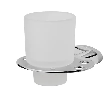 Стакан для зубных щеток AM.PM Awe A1534300 с настенным держателем. Материал держателя: латунь. Покрытие держателя: хром. Материал стакана: матовой стекло. Высота: 98 мм.