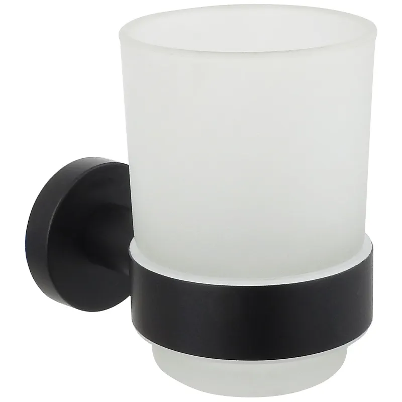 Стакан для зубных щеток Aquatek AQ4004MB.Характеристики: Цвет: черный матовый. Материал: латунь, нержавеющая сталь, матовое стекло. Габариты (ШхВхД): 67х95х104 мм. Метод крепления: шурупы. Монтаж: на стену. В комплекте поставки: Стакан для зубных щеток. Держатель. Монтажный комплект.