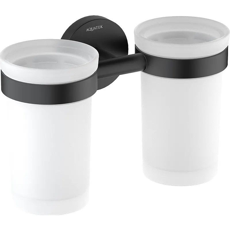 Стакан для зубных щеток Aquatek Европа AQ4117MB двойной.Характеристики: Цвет: черный матовый. Материал: латунь, нержавеющая сталь, стекло белое матовое. Размеры (ШхВхД): 177х119х73 мм. Метод крепления: шурупы. Монтаж: на стену. В комплекте поставки: Стакан - 2 шт. Держатель стаканов. Монтажный комплект.