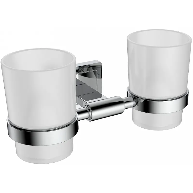 Стакан для зубных щеток CeramaLux Gamma 12303 двойной.Характеристики: Цвет: хром. Материал: латунь, стекло. Размеры (ШхВхД): 197х95х106 мм. Монтаж: на стену. В комплекте поставки: Стакан для зубных щеток.