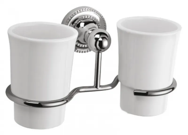 Стакан для зубных щеток Fixsen Style FX-41107 двойной в ванную комнату.Стаканы выполнены в лаконичном дизайне, который будет органично смотреться в интерьере ванной в классическом стиле. Использованы материалы: сплав металлов, латунь с покрытием никель-хром. Размеры: 9x20x13 см. Крепление на стену шурупами (в комплекте поставки). Блистерная упаковка.