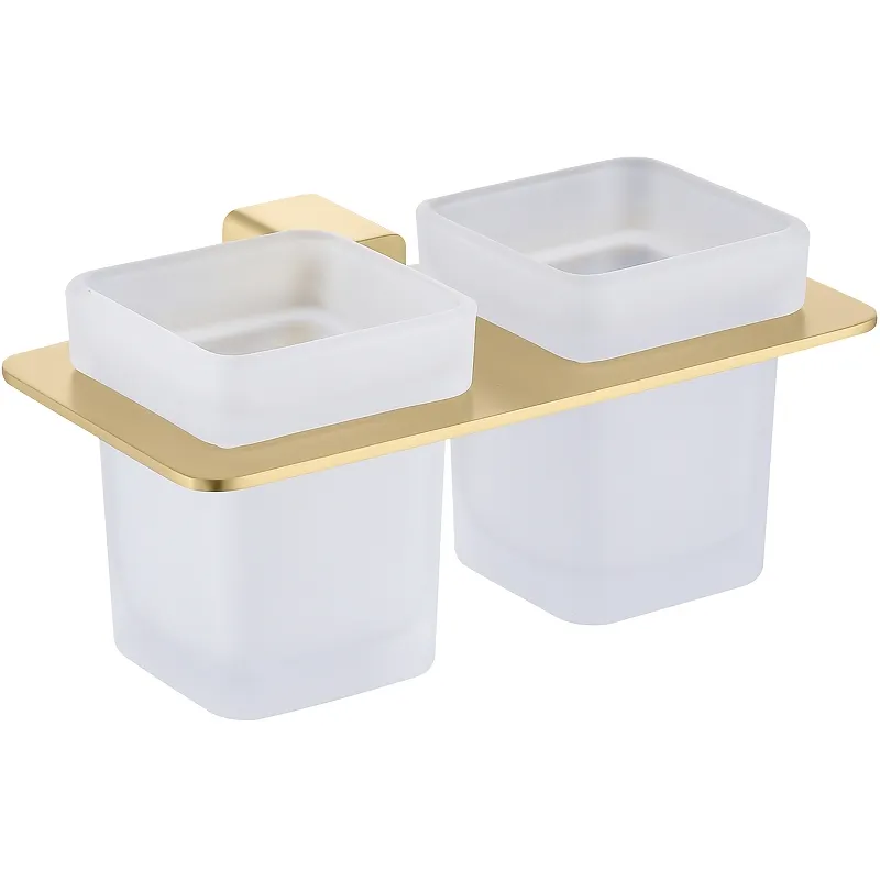 Стакан для зубных щеток Raglo R301.08.03 двойной.Характеристики: Цвет держателя: золото матовое. Материал держателя: латунь. Материал стакана: матовое стекло. Размеры (ШхВхД): 180х86х120 мм. Монтаж: настенный. В комплекте поставки: Стакан - 2шт. Держатель стаканов.