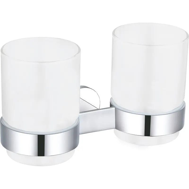Стакан для зубных щеток Rav Slezak Yukon YUA0202CB двойной.Характеристики: Цвет: хром, белый. Материал: латунь, стекло. Поверхность: матовая, глянцевая. Форма розетки: овальная. Монтаж: настенный. Размер (ШхВхГ): 174х96х84,3 мм. В комплекте поставки: Стакан для зубных щеток - 2 шт. Настенный держатель.