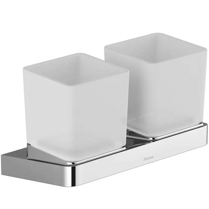 Стакан для зубных щеток Ravak 10° X07P322 двойной.Характеристики: Цвет: хром. Размер: 17х10х11.5 см. Материал: латунь, матовое стекло. Монтаж: настенный. В комплекте поставки: держатель, 2 стакана для зубных щеток.