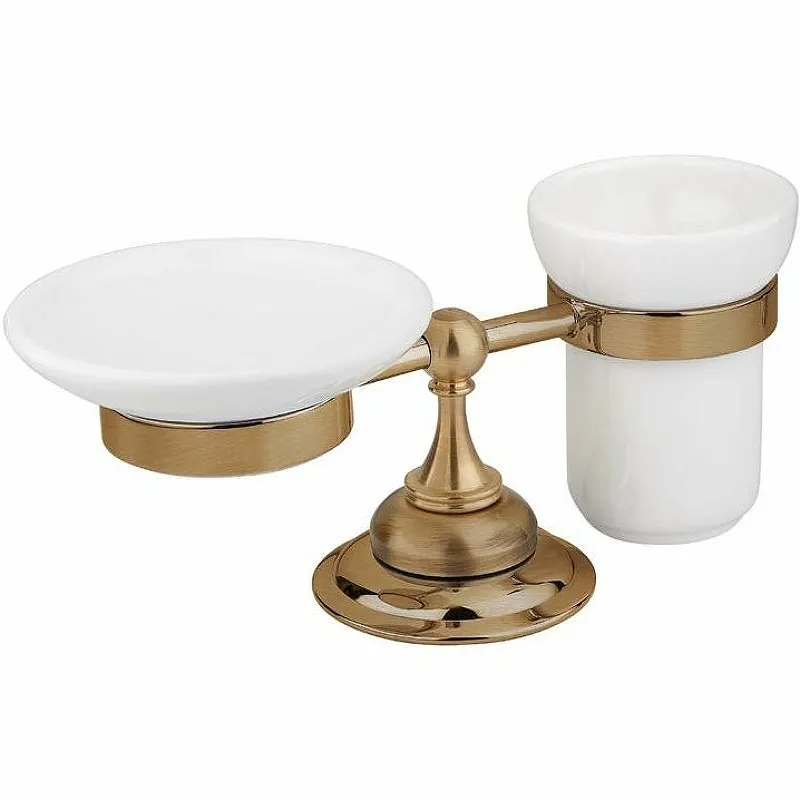 Стакан для зубных щеток с мыльницей Cezares Aphrodite APHRODITE-STTP-02.Характеристики: Цвет: бронза. Материал: латунь, керамика. Монтаж: настольный. В комплекте поставки: Стакан для зубных щеток. Мыльница. Держатель.
