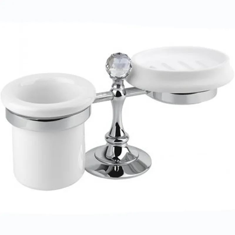 Стакан для зубных щеток с мыльницей настольный Cezares Olimp OLIMP-STT-01-Sw.Стакан для зубных щеток с мыльницей Cezares из коллекции Olimp стойко выдержит постоянное воздействие влаги, подчеркнув общий вид санузла.Характеристики: Цвет: хром. Материал: латунь, керамика. Ручка: Swarovski. Монтаж: настольный. Габариты (ШхВхД): 27x13x11 см. В комплекте поставки: