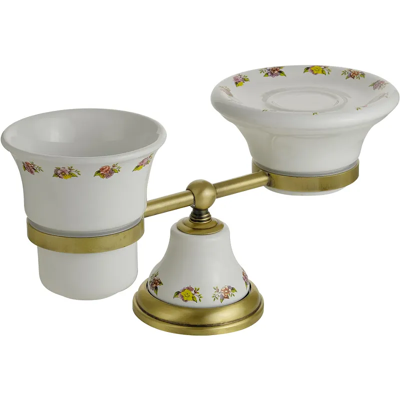 Стакан для зубных щеток с мыльницей Migliore Provance 17642 — идеальный выбор для вашего санузла. Благодаря стильному дизайну в стиле ретро и высококачественным материалам, данное изделие подчеркнёт ваш изысканный вкус. Мыльница и стакан выполнены из латуни и керамики, что обеспечивает долговечность и устойчивость к влаге. Это настольное решение станет неотъемлемой частью вашего интерьера.