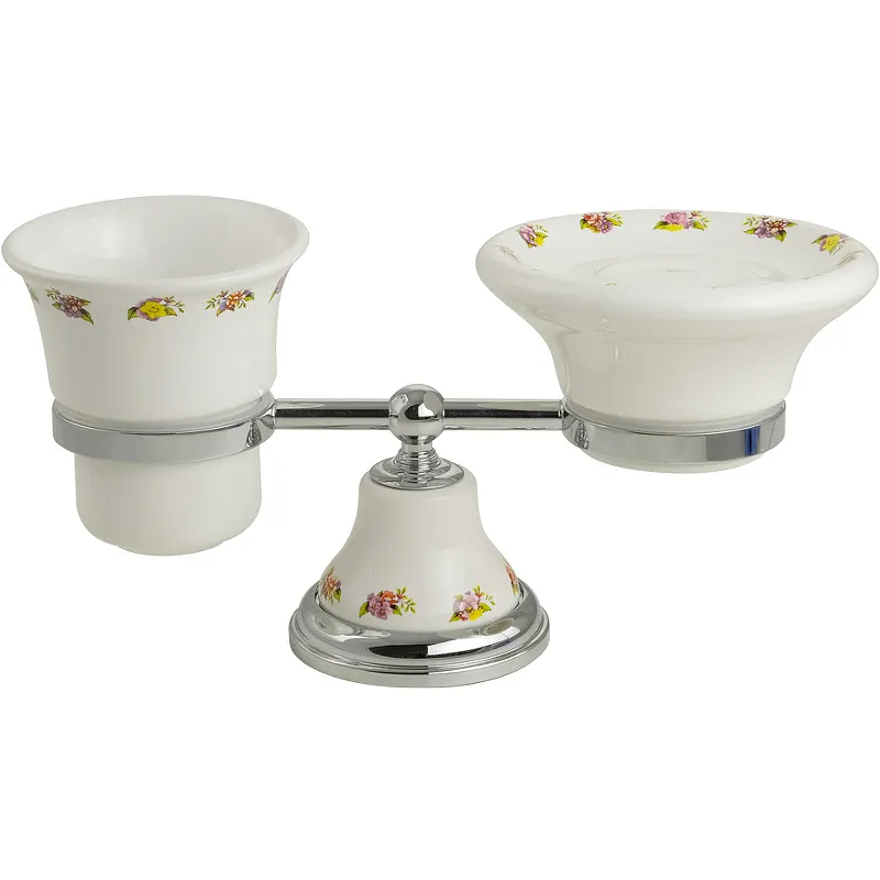 Стакан для зубных щеток с мыльницей Migliore Provance 17677.Стакан для зубных щеток с мыльницей Migliore стойко выдержит постоянное воздействие влаги, подчеркнув общий вид санузла.Характеристики: Цвет: хром, белый. Материал: латунь, керамика. Размеры (ШхВхД): 281х130х121 мм. Монтаж: настольный. В комплекте поставки: Стакан для зубных щеток. Мыльница.