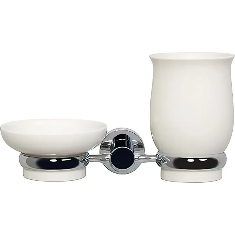 Стакан для зубных щеток с мыльницей WasserKRAFT K-24226.Характеристики: Цвет: хром, белый. Материал: металл, фарфор. Уплотнительные пластиковые кольца. Покрытие: хромоникелевое. Монтаж: настенный. В комплекте поставки: Стакан. Мыльница. Держатель двойной.