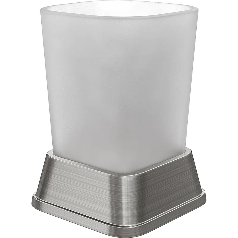 Стакан для зубных щеток WasserKRAFT Amper K-5428N.Характеристики: Цвет: никель. Материал: металл, уплотнительные пластиковые кольца, матовое стекло. Монтаж: настольный. В комплекте поставки: Стакан для зубных щеток.