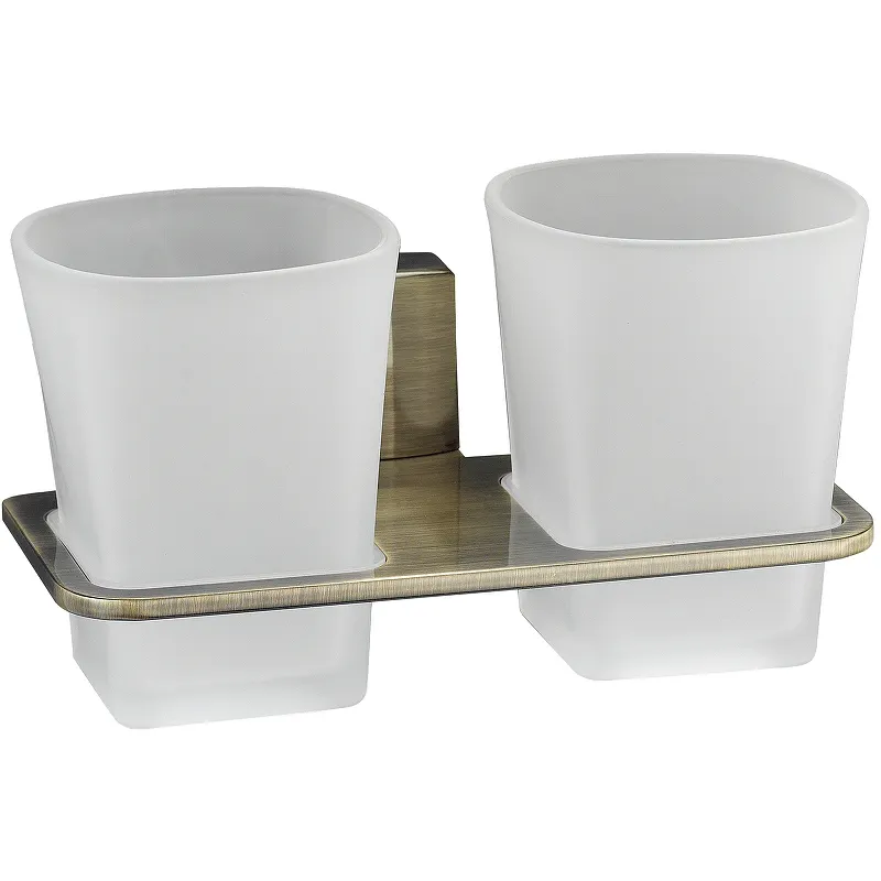 Стакан для зубных щеток WasserKRAFT Exter K-5228D двойной настенный.Характеристики: Материал: металл, матовое стекло. Цвет: светлая бронза. Фактура: матовая. Уплотнительные пластиковые кольца. Размеры (ШхВхД): 18х10х10,5 см. Монтаж: настенный. В комплекте поставки: Держатель. Стакан для зубных щеток (2 шт.). Набор для монтажа.