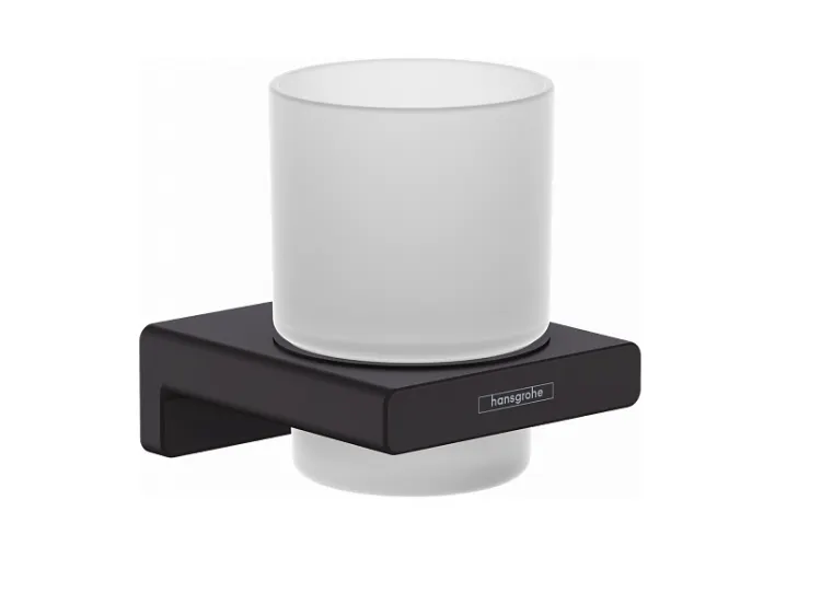 Стакан, Hansgrohe, AddStoris, одинарный, ширина, мм-81, глубина, мм-91, высота, мм-94, настенный, материал стакана-стекло матовое, материал держателя-металл, крепления в комплекте, цвет-черный матовый арт-41749670