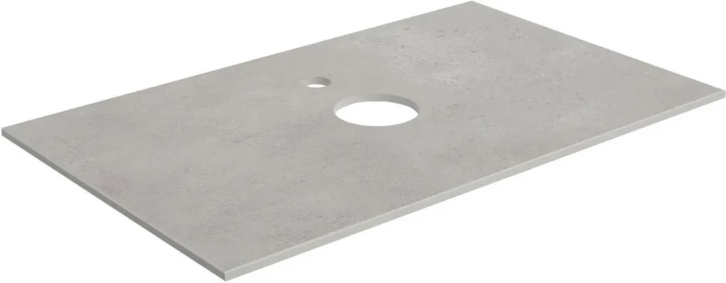 Столешница из керамогранита в сером цвете "под бетон" толщиной 10 мм предназначена для установки сверху на тумбу Nova Lite шириной 75 см. Керамогранит прекрасно подходит для помещений с повышенной влажностью. Это влагостойкий материал высокой плотности, благодаря чему ему не страшны агрессивные вещества. Он обладает также исключительной твердостью, что делает его стойким к истиранию. В столешнице предусмотрено отверстие для установки накладной раковины и вывода шлангов подводки воды. При установке смесителя на столешницу отверстие необходимо будет сделать самостоятельно в том месте, в котором удобно.