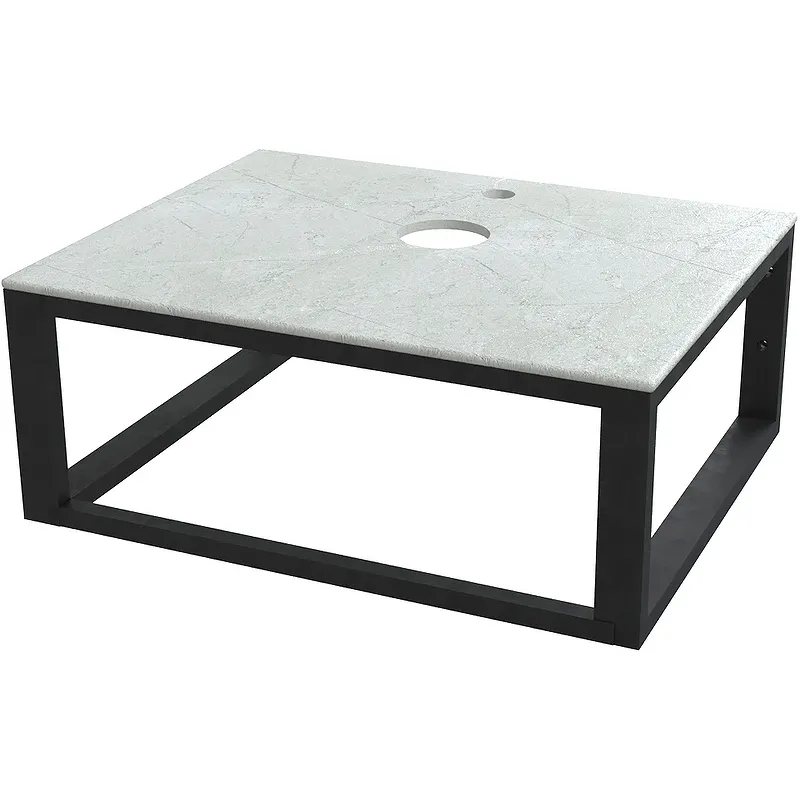 - Высококачественные материалы: Столешница изготовлена из керамогранита и металла, что обеспечивает долговечность и устойчивость к повреждениям.