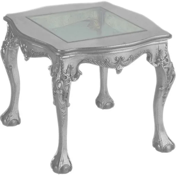 Столик Migliore Retro 53 21821 для ванной комнаты.Квадратный столик со стеклянной столешницей на изящно изогнутых ножках, с витыми объемными узорами.Характеристики: Габаритные размеры (ШхВхГ): 530х470х530 мм. Материал: пенополиуретан; цвет: серебро (Argento). Столешница: стекло. Декоративные элементы: витые объемные узоры. В комплекте поставки: Столик.