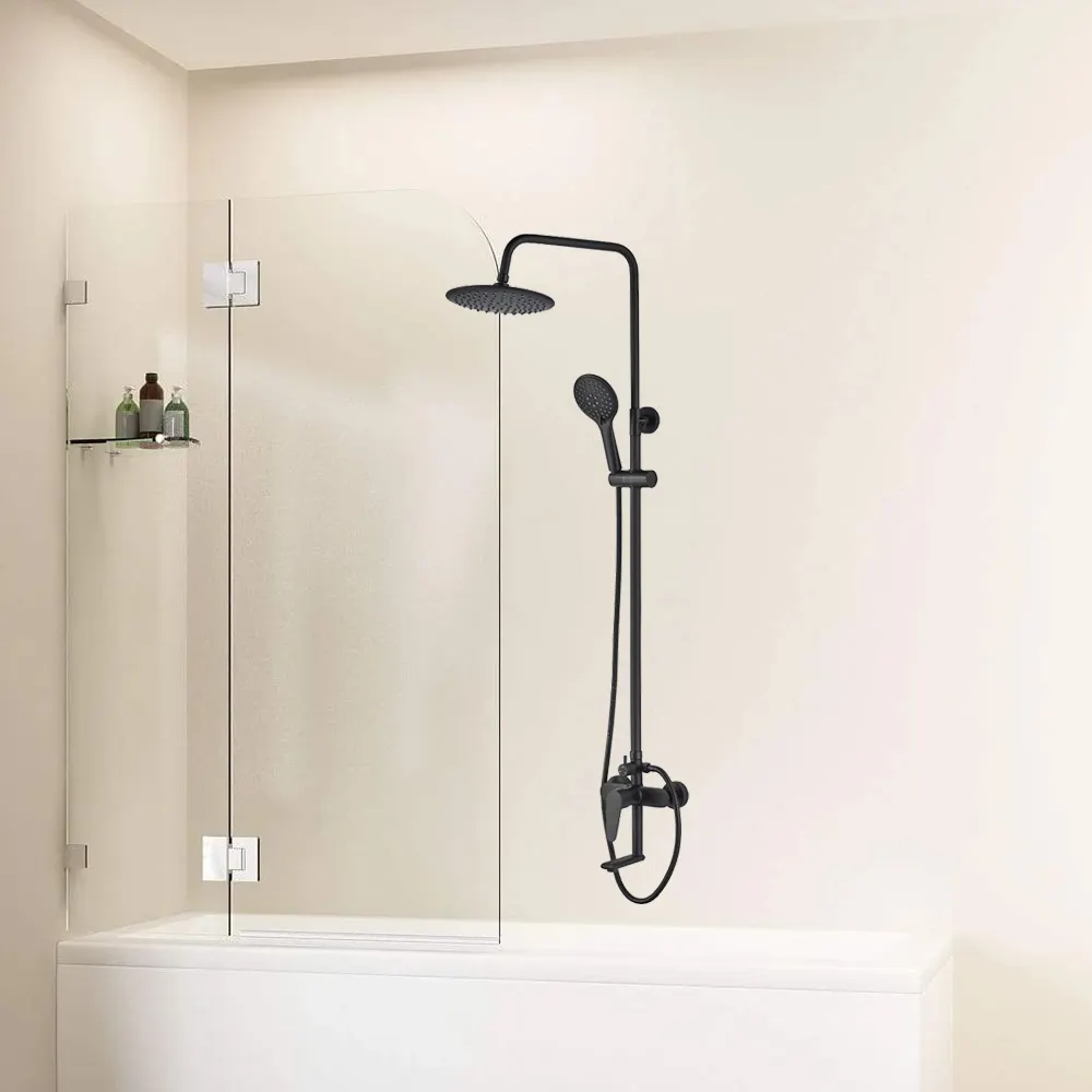 Материал: латунь Цвет: черный Керамический картридж 35 мм Керамический дивертор Поворотный излив Шланг в оплетке из нержавеющей стали 1,5 м Подвижный держатель лейки Душевая лейка Fast Clean (3 режима) Диаметр лейки 11,5 см Регулируемая высота душевой стойки 91,5-129 см Верхний душ Fast Clean Диаметр верхнего душа 23 см Эксцентрики, отражатели, крепеж в комплекте Гарантия на корпус и покрытие: 5 лет Гарантия на комплектующие: 3 года