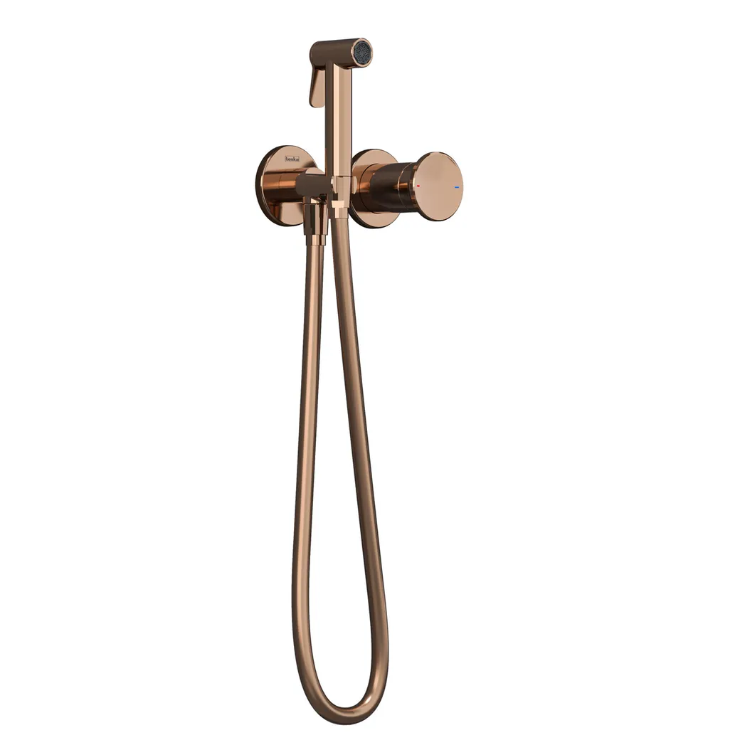 Встраиваемый смеситель c гигиеническим душем на 2 отверстия Arte Tera розовое золото TESKA арт-T5539