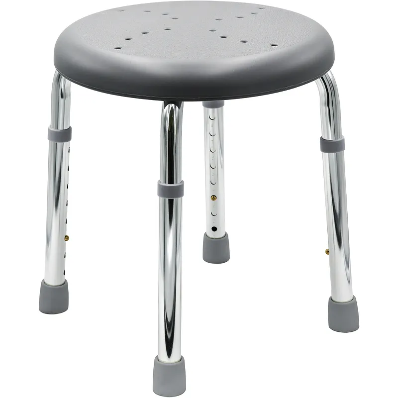Табурет в ванную Ridder Go А170117.Характеристики: Цвет: серый. Материал: алюминий, пластик. Форма: круглая. Габариты (ШхВхД): 505х525х354 мм. Регулировка высоты от 349 мм до 525 мм. Монтаж: напольный. В комплекте поставки: Табурет для ванной.