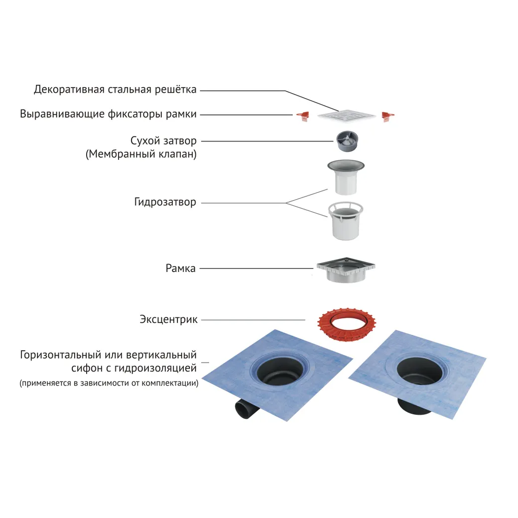 Душевой трап Berges серии ZENTRUM привлекает внимание своей ультратонкой рамкой, эстетичным внешним видом, простотой установки и безопасной конструкцией. Это функциональное и стильное решение для организации водоотвода во внутренних помещениях. • Разнообразие дизайнов и размеров решеток, а также вариант под вклейку плитки (ZENTRUM Keramik). • Решетка из высококачественной нержавеющей стали AISI 304 в разном исполнении: Norma и Antik толщиной 3 мм, Uno толщиной 0,8 мм. • Отдельная регулировка высоты установки решетки от 8 до 24 мм (толщина финишного покрытия). Для ZENTRUM Keramik от 18 до 34 мм. • Легкое выравнивание решетки благодаря запатентованным выравнивающим деталям. • Высокая пропускная способность 42 л/мин при компактных размерах, обеспечивающих низкую высоту монтажа от 65 мм. • Корпус трапа с интегрированной гидроизоляционной мембраной, гарантирующей герметичность. • Комбинированный затвор обеспечивает самую надежную защиту от проникновения неприятного запаха из канализации. Благодаря тщательно продуманной конструкции, эффективно задерживает мусор и грязь внутри, легко извлекается из корпуса для очистки. • Фланец на корпусе может быть согнут под углом 90 градусов, что позволяет установить трап вплотную к стене. Запатентованная вставка эксцентрик поможет дополнительно отрегулировать расположение решетки. Также благодаря своей конструкции эксцентрик обеспечивает беспрепятственный сток воды при возможных попаданиях ее под финишное покрытие. Высокотехнологичное и надежное решение для Вашего дома. Идеальный результат.